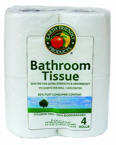 Earth Friendly Products Bathroom Tissue, Unscented, 2-ply, 175 Sheets per Roll, 4-Count Packages (Pack of 24) Reviews